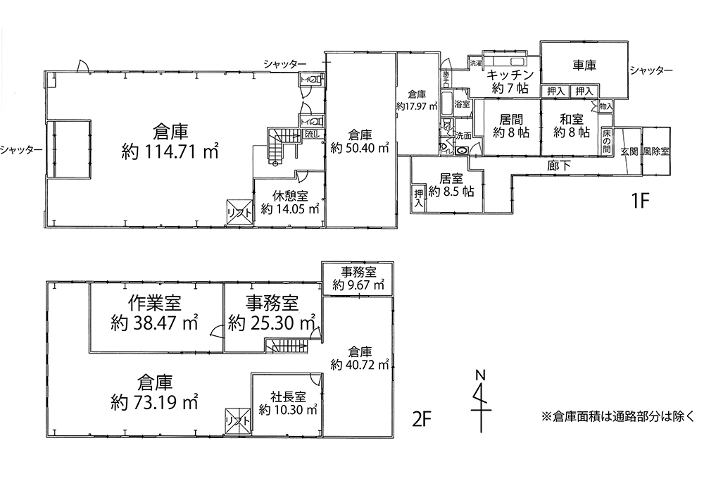 | 間取り | 倉庫+作業室+事務所+居宅(3K) | ||